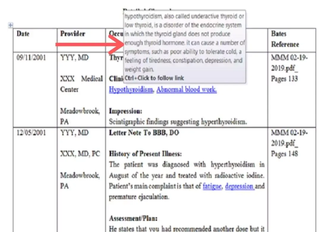 This feature helps you understand medical terminologies used in medical chronologies, narrative summaries, and deposition transcripts.